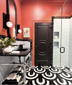 یک. ترکیب رنگ قرمز با سنگ تراتزو دز سرویس بهداشتی