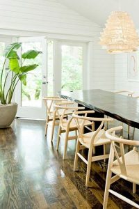 در تصویر زیر، لوستر قفسدار توانسته اتاق ناهارخوری را بیش از پیش به سبک روستیک نزدیک کند. به علاوه رنگ مشکی لوستر، در تضاد با رنگهای خنثی اتاق غذاخوری توانسته جذابیت بیحد و حصری ایجاد کند.
