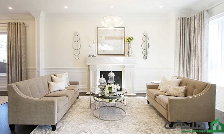 تاکید بر جزئیات: رنگ سفید جزئیات معماری اتاق پذیرایی را به خوبی، برجسته میکند.